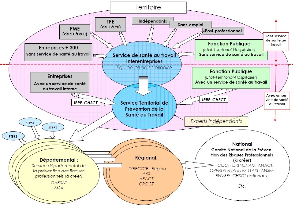 Dans les entreprises citées, notamment dans les TPE ou les petits services de l’administration, les employeurs n’ont ni le temps ni les compétences pour instruire une prévention des risques professionnels avec efficacité. Ce service territorial de prévention de la santé au travail (SPST) aura pour compétence générale et directe, non seulement le suivi individuel du travailleur, mais aussi l’organisation de la prévention de la santé au travail dans un territoire donné.
