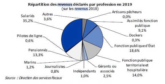 Ce sont donc les moyennes qu’il est intéressant d’observer. Un pilote peut gagner en fin de carrière jusqu’à 14 056 €, mais la moyenne tombe à 5 181 € ce qui veut dire que parmi les 12 autres, il y en a qui gagnent beaucoup moins. Il en est ainsi pour toutes les professions avec en fin de liste, les artisans pêcheurs, les retraités et les indépendants (autres = activités réduites, étudiants, etc.). Mon regard de « mayou » s’étonne de voir les artisans pêcheurs dans le bas du tableau, eux qui ont fait la richesse de cet archipel au point de vouloir le classer au patrimoine mondial de l’humanité par l’Unesco. Le bénéfice d’un revenu de base pour eux, mais aussi pour tous les producteurs locaux, serait une bonne initiative.