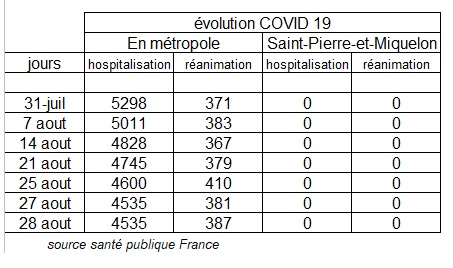 La rentrée scolaire pour les élèves est prévue le jeudi 3 septembre (arrêté ICI). Mais au 27 août, selon l’article de SPM 1ère, « La date de la rentrée scolaire encore incertaine dans l’archipel ». Le ministre disait, qu’aucune dérogation ne sera donnée, pour se raviser ensuite, plaçant toutes les familles concernées dans l’incertitude. Le préfet a tranché. La rentrée est confirmée pour le 3 septembre ! Compte tenu de ces hésitations, le risque de contagion doit donc être important. Il est vrai que la situation dans l’archipel est particulièrement préoccupante et les chiffres parlent d’eux-mêmes :
