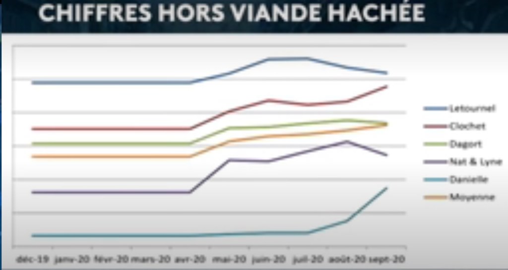 Alors, une partie de l’écart se trouve ailleurs et en particulier, dans les marges. Le 20 h de SPM-1ère a reproduit ce tableau qui informe de l’évolution des marges pour un produit, dans 6 commerces alimentaires. Mais attention !