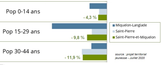 Les moins de 14 ans sont en recul de 4,3 %, les 15-29 ans de presque 10%, et les 30-44 ans, de près de 12 % ! Ces chiffres confortent la courbe ci-dessus et rien ne permet de dire aujourd’hui qu’elle va s’inverser. Si au début, les enfants sont hébergés par les parents, par la suite ce sont les enfants qui hébergent les parents. Et comme ces derniers quittent l’archipel, les parents pensent à se rapprocher d’eux et, etc.