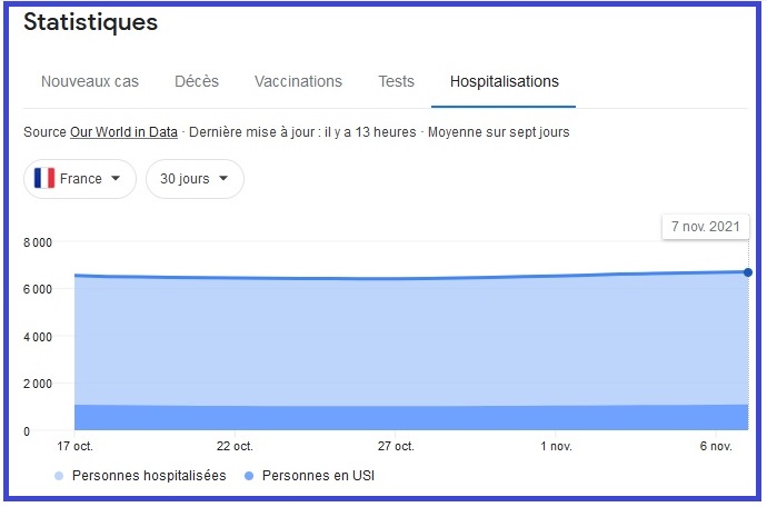 Exemple France, Hospitalisations sur les 30 derniers jours :