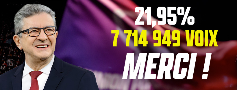 Avec 21,95 % des suffrages exprimés, Jean-Luc Mélenchon progresse de 2,37 % par rapport à son résultat de 2017 et se retrouve à moins de 1,5 % de Marine Le Pen (Les derniers sondages avant le scrutin plaçaient Mélenchon à 17 %, soit 7 % derrière Marine Le Pen, de quoi décourager quelques électeurs de s’approcher du second tour !)