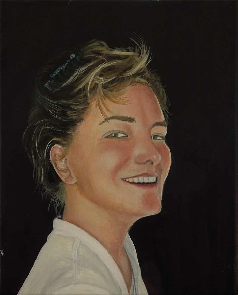 Ma dernière réalisation, en cours de finition, est le portrait de ma fille. Une huile sur une toile de 24 par 30.