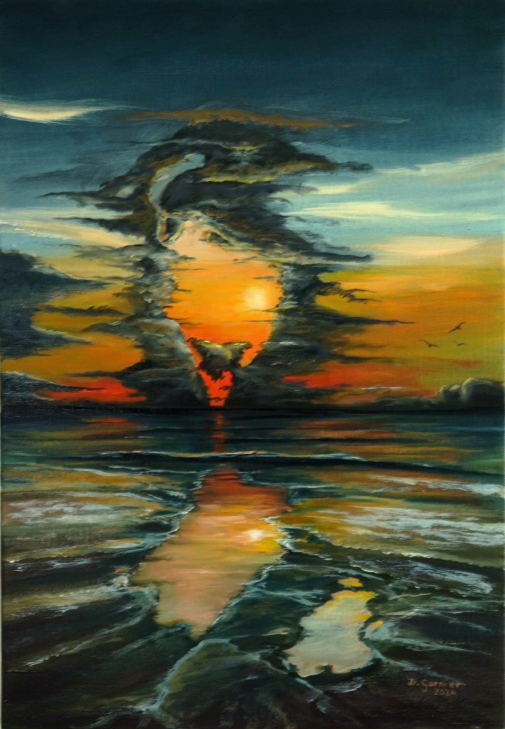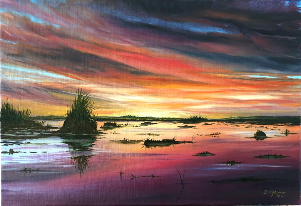 Une huile sur toile de lin de 55 x 38, inspiré d’une photo de Patrick Dérible.