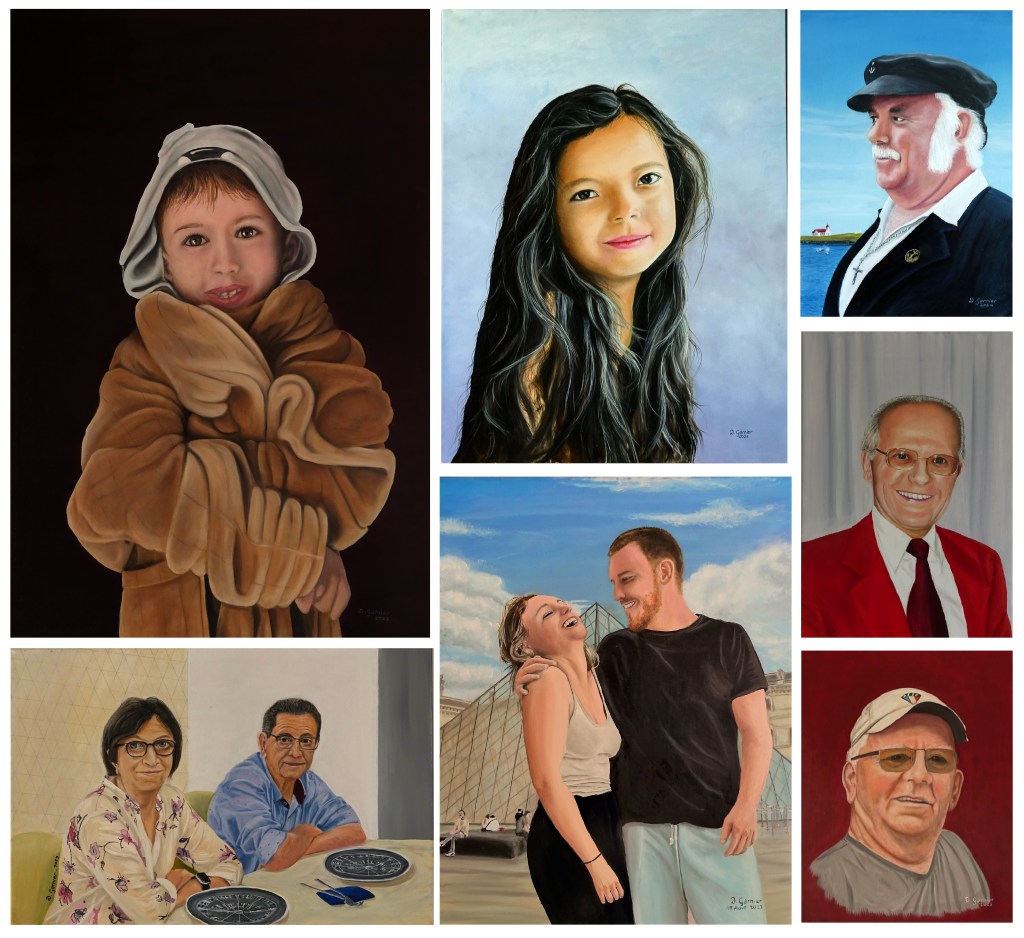 Peinture à l’huile d’après photo. Le délai minimum de réalisation est de six semaines. Les tarifs évoluent en fonction de la taille et du nombre de visages.(exemple 30 x 40 – 300 €).