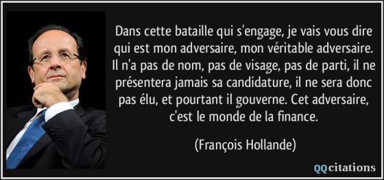 « Mon adversaire, c’est le monde de la finance » disait-il !